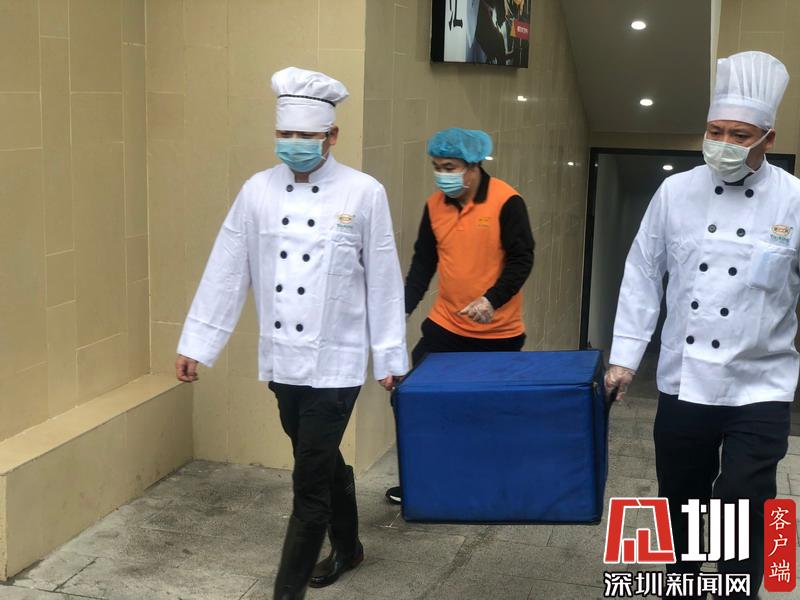 為新型冠狀病毒感染的肺炎疑似病人準(zhǔn)備的餐食到達深圳禾正醫(yī)院(深圳市新型冠狀病毒感染第二隔離區(qū))。