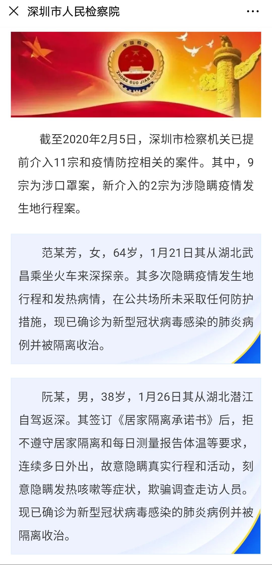 他們隱瞞疫情發(fā)生地行程和發(fā)熱病情四處走動 深圳檢察機關(guān)出手了
