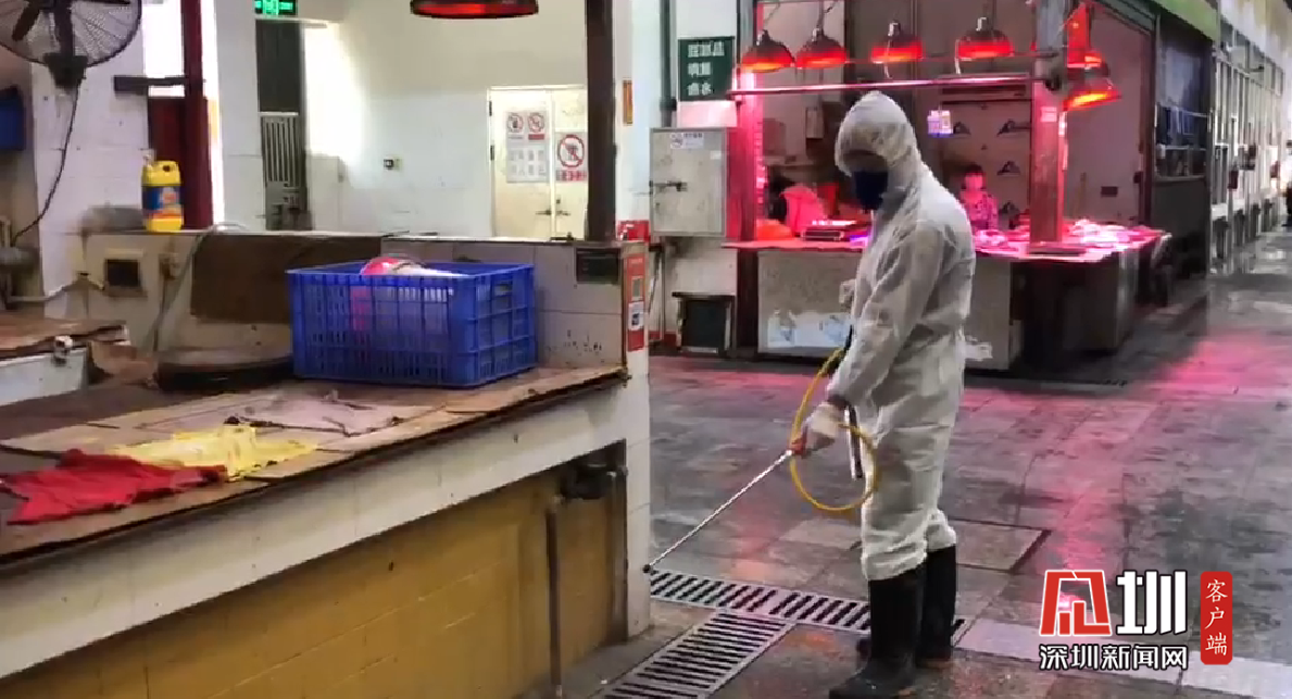 在現(xiàn)場,記者看到有2名消殺工作人員正在對市場的下水道進行消殺清潔?!澳壳皠訖z所負責福田區(qū)31個農(nóng)批市場的消殺工作,我們從1月22號就開始對農(nóng)貿(mào)市場進行消毒,每天消殺一次,消殺的濃度比之前有所增加,比平時多了一倍。消殺清潔工作對于疫情防控非常重要,效果也非常明顯?!眲訖z所工作人員說道。