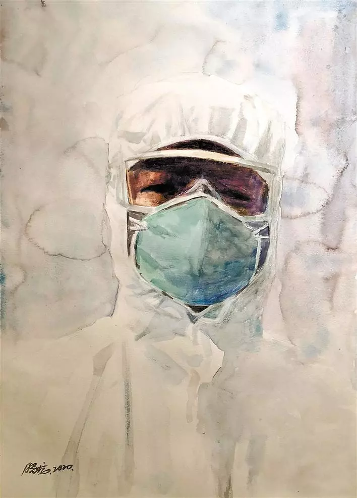 魯文詠在詩(shī)歌《最美的人,你看不見臉》中寫道:“最美的人,你看不見他們的臉。他們的臉被口罩遮著,被護(hù)目鏡遮著,被防護(hù)服遮著,有時(shí),也被夜色遮著。他們?cè)谌巳豪锎┬校诮棺频钠笸哪抗饫锎┬?。他們來了,他們穿過,焦躁的人群就安靜下來。最美的人,你看不見他們的臉,看不見年齡,甚至性別。是的,天使不計(jì)年齡,天使不分性別?!?/p>