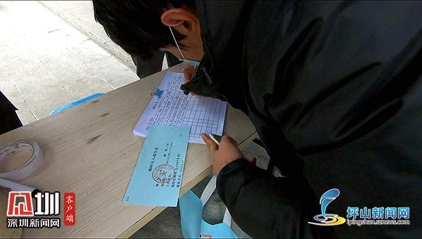 創(chuàng)業(yè)村是深汕合作區(qū)的公共住房,住在這里的都是在合作區(qū)工作的干部職工?!澳愫茫埮浜狭肯麦w溫?!眲傔M(jìn)大門,小區(qū)的保安就幫記者先量體溫,還將體溫計(jì)上顯示的數(shù)據(jù)給記者看。除此之外,保安還檢查了記者身上所佩戴的工作證,工作證上有記者的照片、姓名等信息。等所有信息核對無誤后,保安就予以放行了。值得一提的是,“檢查工作證”這項(xiàng)流程也是深汕合作區(qū)防控疫情的創(chuàng)新舉措之一,有效地提升防控效果。