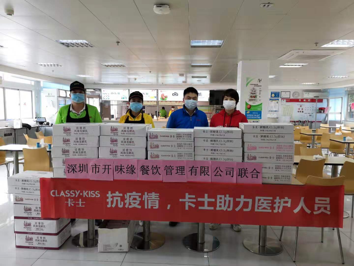2月5日中午,卡士酸奶有限公司為當(dāng)天在崗的員工送來價(jià)值2500元的卡士奶300支。