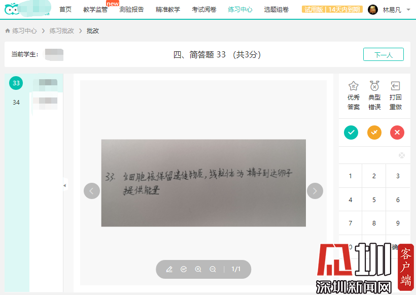 除了備課、上課外,如何及時完成布置作業(yè)、批改作業(yè)的工作也是線上授課的一個挑戰(zhàn)。深圳中學(xué)提前布局,配套了線上的智能教學(xué)系統(tǒng),讓同學(xué)們每天在線上完成作業(yè),從課后練習(xí)的角度保證了教學(xué)質(zhì)量。課后教師們通過學(xué)校的智能教學(xué)平臺批改同學(xué)們的作業(yè),并通過微信等方式回答學(xué)生的問題。