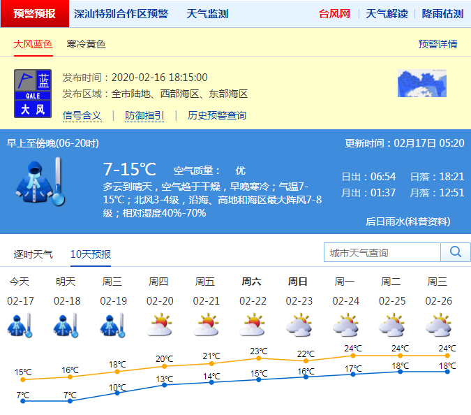 見圳客戶端·深圳新聞網(wǎng)2020年2月17日訊 受寒潮影響,16日深圳氣溫驟降,白天氣溫維持在10~13 ℃之間波動,較15日氣溫下降10 ℃左右。據(jù)市氣象臺消息,寒冷天氣還將持續(xù)3天,其中18日氣溫進一步下降,最低溫在7 ℃左右。