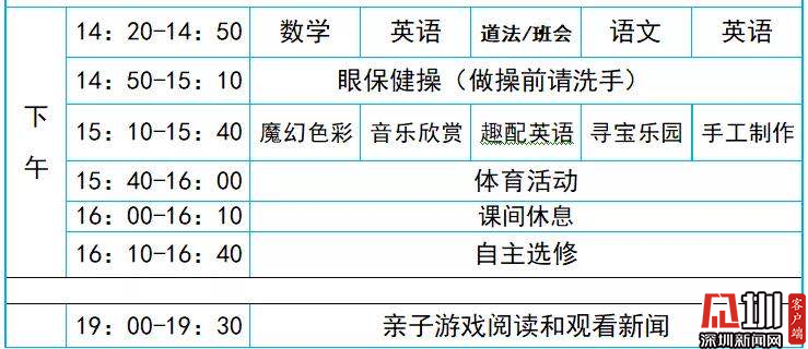 網(wǎng)課的課程表和正式上課的課程表還是有所不同的。比如福田區(qū)景蓮小學的課程表是全校統(tǒng)一,上午下午各有2節(jié)課,每節(jié)40分鐘(老師講課15分鐘,學生自己線下做課堂練習25分鐘)。該校二年級今天上的科學課和音樂課就緊扣新冠肺炎疫情防控,科學課用動畫視頻講解新冠病毒的原理,并請小朋友自己畫一幅新冠病毒的圖;音樂課則是播放教唱《加油歌》《奉獻》,向疫情防控的逆行勇士致敬。