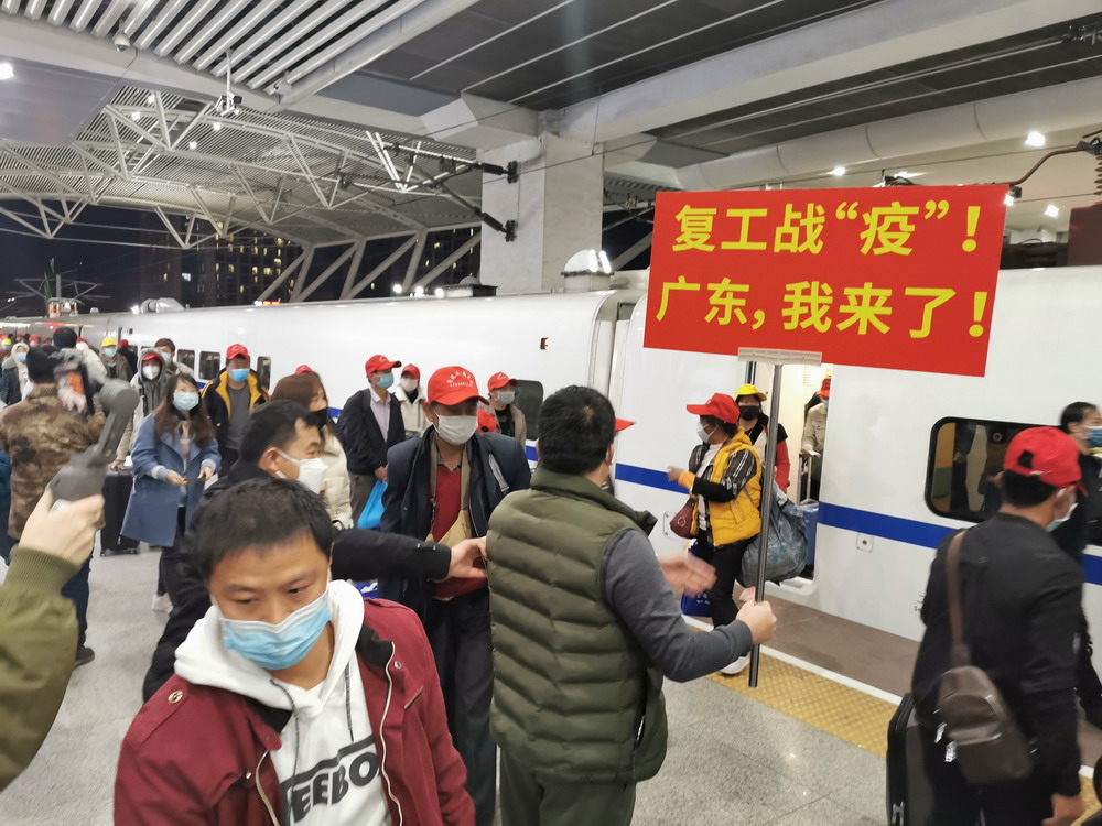 目前,在全省上下全力抗擊新冠肺炎疫情的同時,廣東各類企業(yè)已陸續(xù)復工復產(chǎn)。針對節(jié)后部分務工人員返程難、部分企業(yè)用工難的問題,廣東省人社部門在全面落實省委省政府疫情防控決策部署的前提下,主動加強與勞務輸出省份溝通對接,對疫情相對平穩(wěn)、來粵就業(yè)人員相對集中的云南、四川等部分省份,聯(lián)合當?shù)厝松绮块T共同組織開行“點對點”返粵返崗專列,為務工人員提供全流程的返崗對接服務。據(jù)悉,在本趟列車開行前,廣東省人社部門根據(jù)重點企業(yè)和項目復工復產(chǎn)安排,向云南省人社部門提供不同時段的企業(yè)空缺崗位共11萬個,由當?shù)厝松绮块T按需組織發(fā)動務工人員并開展集中健康檢測,出具健康證明;途中,云南人社部門會同鐵路部門,共同落實好務工人員進站、候車、乘車、出站等環(huán)節(jié)的疫情防控和客運服務等措施,確保復工人員安全、有序、溫馨出行;到粵后,廣東人社部門提供專車將務工人員接駁至企業(yè),幫助企業(yè)做好疫情期間員工組織接收、上崗復工等準備工作。廣東省人社廳相關工作人員表示:“今年受疫情影響,節(jié)后短期缺工現(xiàn)象比往年更為突出。特殊情況需要特別舉措,除了讓務工者免費乘坐返崗專列,我們還為一些去汕頭、陽江等較遠地區(qū)企業(yè)而沒法當天到達的零散務工者,貼心地提供免費住宿,還買好次日去企業(yè)所在地的車票,送他們上車,并對接當?shù)厝松绮块T安排車輛接駁至廠。我們通過這種‘一條龍’無縫對接服務,既滿足企業(yè)復產(chǎn)的用工需求,又降低返程運輸?shù)囊咔閭鞑ワL險”。