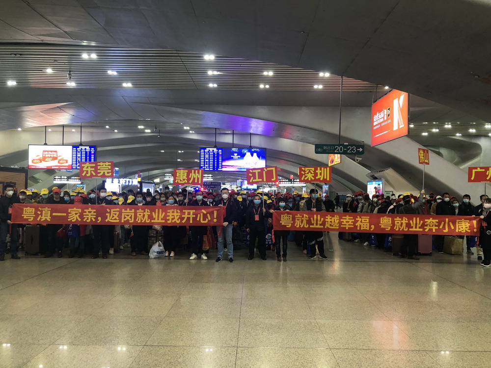 見圳客戶端·深圳新聞網(wǎng)2020年2月19日訊 2月18日14時36分,載有496名云南籍務工人員的D4856次列車從昆明南站開出,于當日22時36分抵達廣州南站,全面拉開了省際協(xié)作組織異地務工人員節(jié)后有序返粵返崗的序幕。據(jù)悉,這是廣東省人社廳和云南省人社廳共同策劃,“點對點”訂制打造的首趟返粵專列,車上的乘客都是節(jié)前已在廣東就業(yè)的返鄉(xiāng)員工,分別來自云南昆明、曲靖、紅河、昭通等7個市州。雖然現(xiàn)在新冠肺炎疫情還未完全過去,但這496名務工人員將帶著政府免費提供的返崗專列“大禮包”,乘著憧憬與希望,分別前往廣州、深圳、佛山、東莞、惠州等市開始新一年的工作和生活。來自云南文山州的李先生在采訪中激動表示,自己已在廣東工作兩年多,廣東的就業(yè)環(huán)境好,這次能在政府幫助下免費回來上班,一路上還有人社部門工作人員帶隊指引,感到非常幸運,一定會好好珍惜,努力工作。
