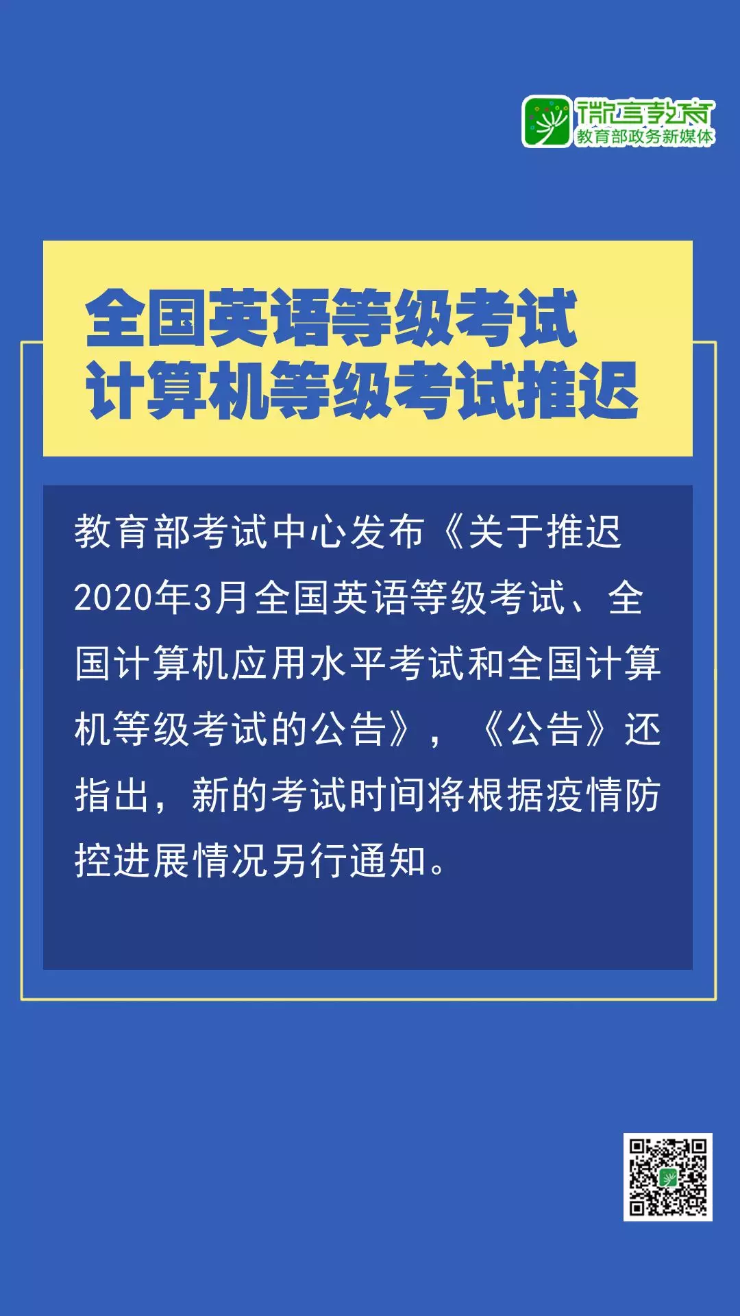 注意啦!研究生、中小學(xué)教資、全國(guó)英語(yǔ)等級(jí)等考試推遲