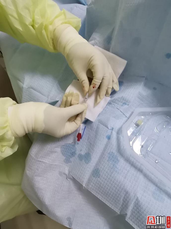 過(guò)程中王玲發(fā)現(xiàn),正如預(yù)期一樣,操作難度很大。靜脈穿刺,用我們的話說(shuō),就是輸液扎針,戴上三層手套后,手感之差可想而知。雖然有講過(guò)配合的要點(diǎn),但因?yàn)槟棠痰暮粑皇呛芷巾?,配合還是不太好。幸虧陳潔麗也對(duì) PICC 很有經(jīng)驗(yàn),兩人互相協(xié)助,最終完成了置管。