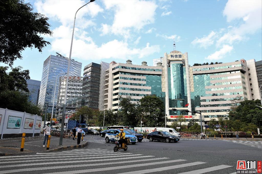 深圳科技園大樓外,工作時間的科苑科發(fā)路口車流量依舊不小。