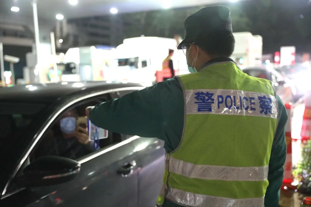 (民警在卡點(diǎn)對(duì)過往車輛進(jìn)行防疫核查)