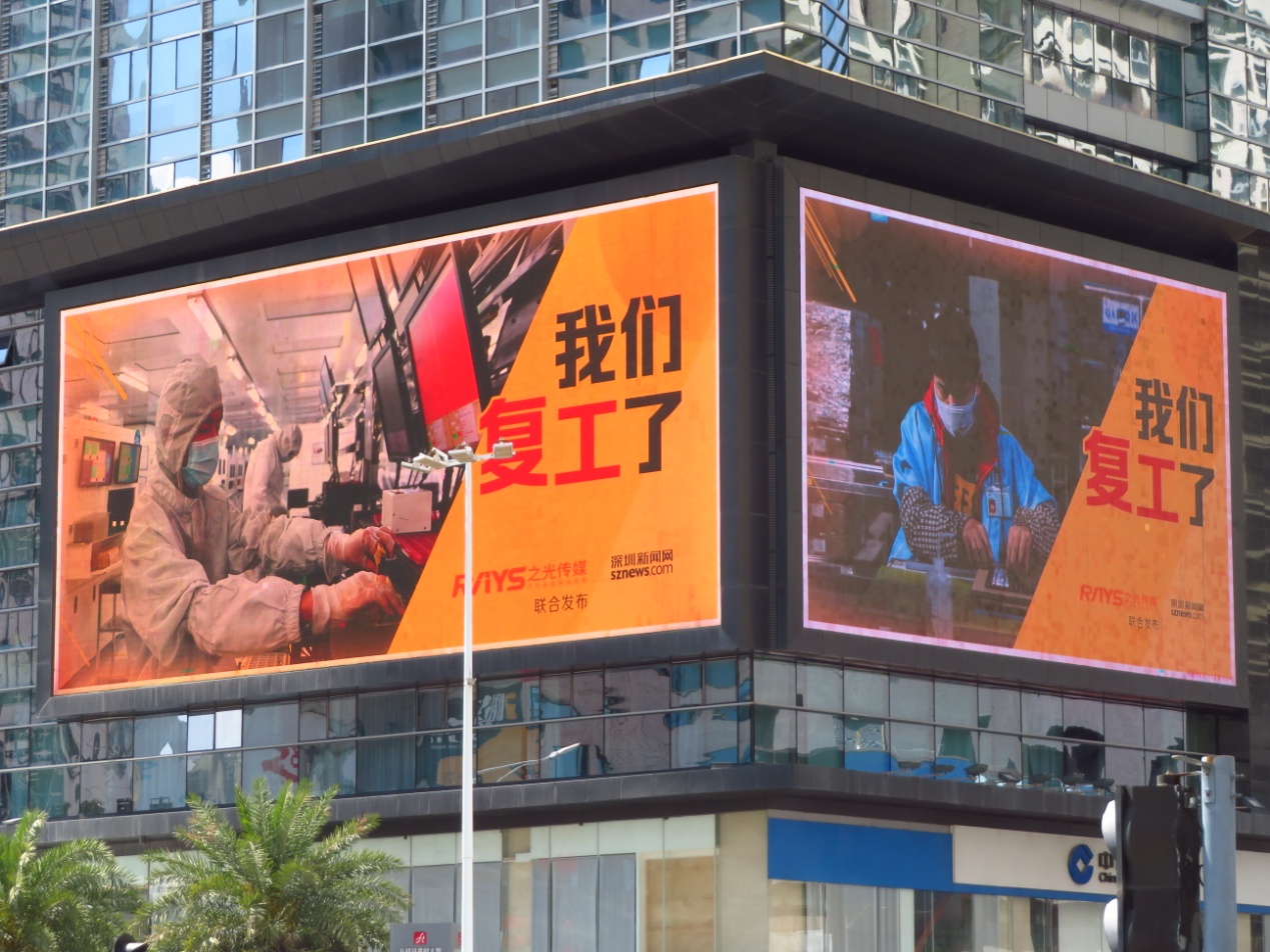 2月以來,深圳新聞網(wǎng)聯(lián)合之光傳媒在17塊戶外LED大屏廣告上刊登了多組不同主題的公益廣告,包括“加油中國”、“向逆行者致敬”、“瞞報就是犯罪”系列警示標(biāo)語、“我們復(fù)工了”等。這些戶外大屏遍布全市各主干道和核心商圈,總面積達(dá)6000㎡,市場價值約1200萬元。