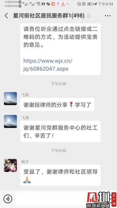 講座還未開(kāi)始,廣大居民已在線(xiàn)上等待??吹揭恍┚用癫惶煜ぞ€(xiàn)上操作,社區(qū)的網(wǎng)格員們紛紛自發(fā)行動(dòng),充當(dāng)起各居民群里的網(wǎng)絡(luò)專(zhuān)家,為大家答疑解惑。本次講座主要涉及家庭暴力的立法、執(zhí)行和救濟(jì)等法律問(wèn)題。段律師以最近網(wǎng)絡(luò)上廣泛關(guān)注的“美妝博主宇芽被家暴”的案例為切入點(diǎn),通過(guò)分析家庭暴力案件的相關(guān)數(shù)據(jù),闡釋了我國(guó)《反家庭暴力法》的立法背景以及實(shí)施的現(xiàn)狀,并為大家講解在生活中遇到家庭暴力時(shí)如何通過(guò)法律手段維權(quán),受到大家的一致好評(píng)。本次講座收聽(tīng)人數(shù)達(dá)1500人次,課后大家仍然熱情不減,繼續(xù)在線(xiàn)上相互溝通交流家庭暴力問(wèn)題。