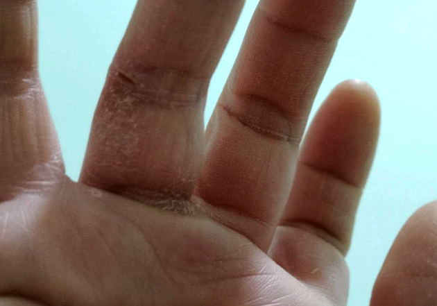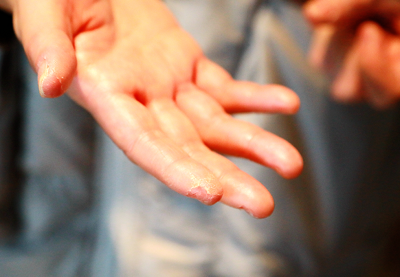 由于長(zhǎng)期近距離接觸患者,徐平每天不得不頻繁洗手、高頻率使用醫(yī)用酒精進(jìn)行手部消毒。這樣做的結(jié)果,就是手部皮膚干燥粗糙、皸裂。但她沒有辦法讓自己停下來(lái),只要疫情還沒有結(jié)束,她就不可能停下來(lái)。