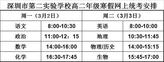 見(jiàn)圳客戶(hù)端、深圳新聞網(wǎng)2020年3月5日訊(記者 陳彬) 受疫情影響,孩子們已宅家一個(gè)多月,網(wǎng)上直播課程也已經(jīng)開(kāi)播了三個(gè)星期?!霸普n堂”效果到底如何呢?為了檢驗(yàn)學(xué)生網(wǎng)上直播課的學(xué)習(xí)效果,3月2日至3日,經(jīng)過(guò)兩個(gè)多星期的探索和測(cè)試,深圳市第二實(shí)驗(yàn)學(xué)校(以下簡(jiǎn)稱(chēng)“二實(shí)”)率先在高二年級(jí)進(jìn)行了一場(chǎng)“云考試”。