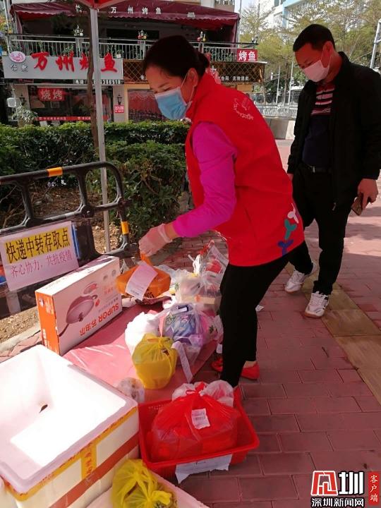 朱麗鳳在快遞點(diǎn)幫隔離居民送物資(左一)