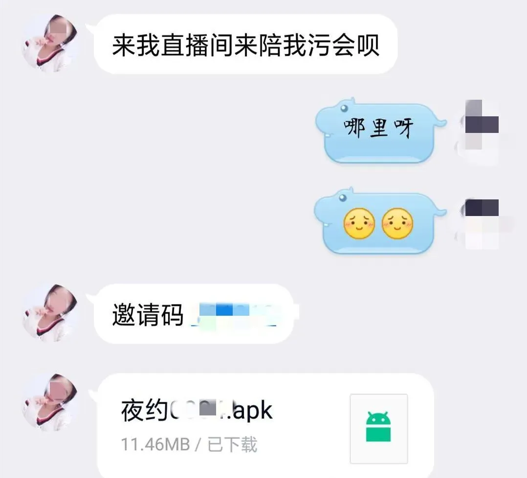 美女直入正題,邀請陳先生安裝一款名為“夜約”的直播軟件,許諾只要在直播間點贊,就可以一對一視頻裸聊。