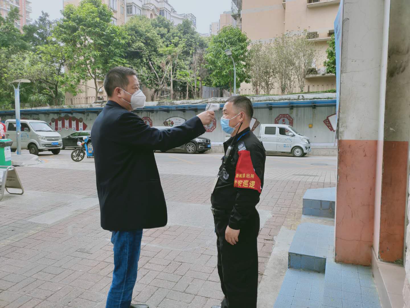 “梁經(jīng)理,我也是一名黨員,我申請加入咱們小區(qū)的疫情防控隊伍?!痹诓趟龠_(dá)的帶動下,兒子蔡榮釗也積極投身防控“疫”線中。每日下班后,他都從寶安的工作單位趕回小區(qū),來到門崗卡點,為進(jìn)出小區(qū)人員進(jìn)行登記、測量體溫,攔截外來人員和車輛。蔡榮釗這一堅持,就是一個多月,得到了物業(yè)管理處和業(yè)主(住戶)們的高度好評。