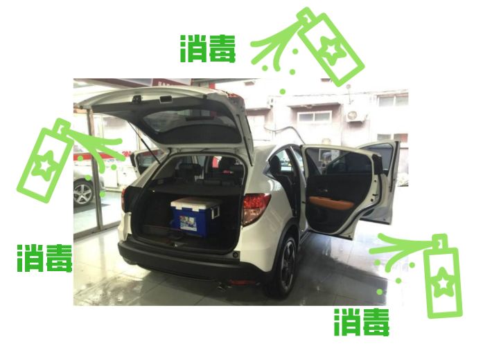 車內:車內坐墊/地毯進行噴灑消毒;儀表板按鍵,方向盤,車門內開把手及車門護板按鍵,引擎蓋及加油蓋拉手、中央扶手,排擋桿及換擋面板等部位采用酒精棉片或蘸酒精的紗布進行擦拭消毒,留存記錄。