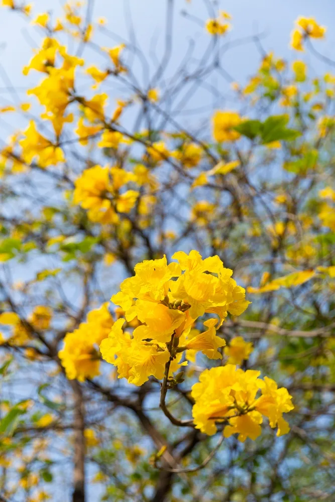 黃花風鈴木迎著和煦的春風驚艷綻放,