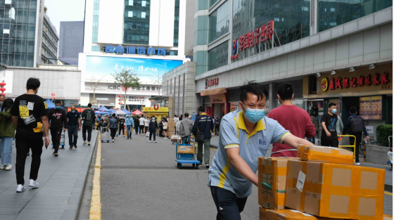 嚴(yán)禁外賣、快遞人員進(jìn)入市場經(jīng)營場所,設(shè)置快遞物品安放區(qū)域,實行非接觸式交接。