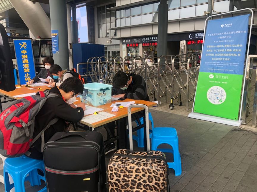 深圳灣口岸出入境旅客都在認(rèn)真填寫健康申報卡