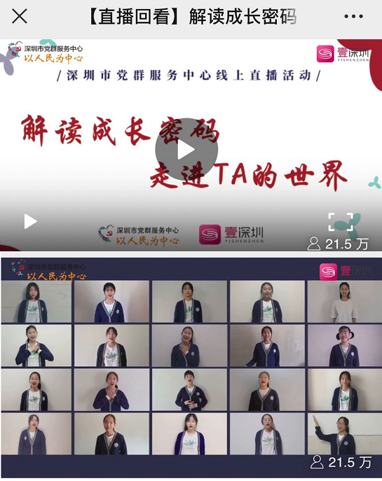 見圳客戶端、深圳新聞網(wǎng) 2020年3月19日訊(記者 陳彬) 3月15日下午,中共深圳市委組織部和深圳廣播電影電視集團(tuán)聯(lián)合在壹深圳客戶端推出深圳市黨群服務(wù)中心線上直播活動(dòng),播出深圳市第二實(shí)驗(yàn)學(xué)?;ㄕZ合唱團(tuán)“云合唱”作品《奉獻(xiàn)》,截止3月18日,線上點(diǎn)擊量達(dá)到21.5萬 。