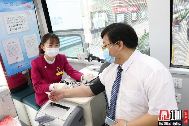 正式抽血之前,為了確保每位參與獻(xiàn)血的老師和家長們的身體狀況適合獻(xiàn)血,醫(yī)生為參與獻(xiàn)血的老師家長們進(jìn)行基本的體檢(量血壓測心率采集血樣)。
