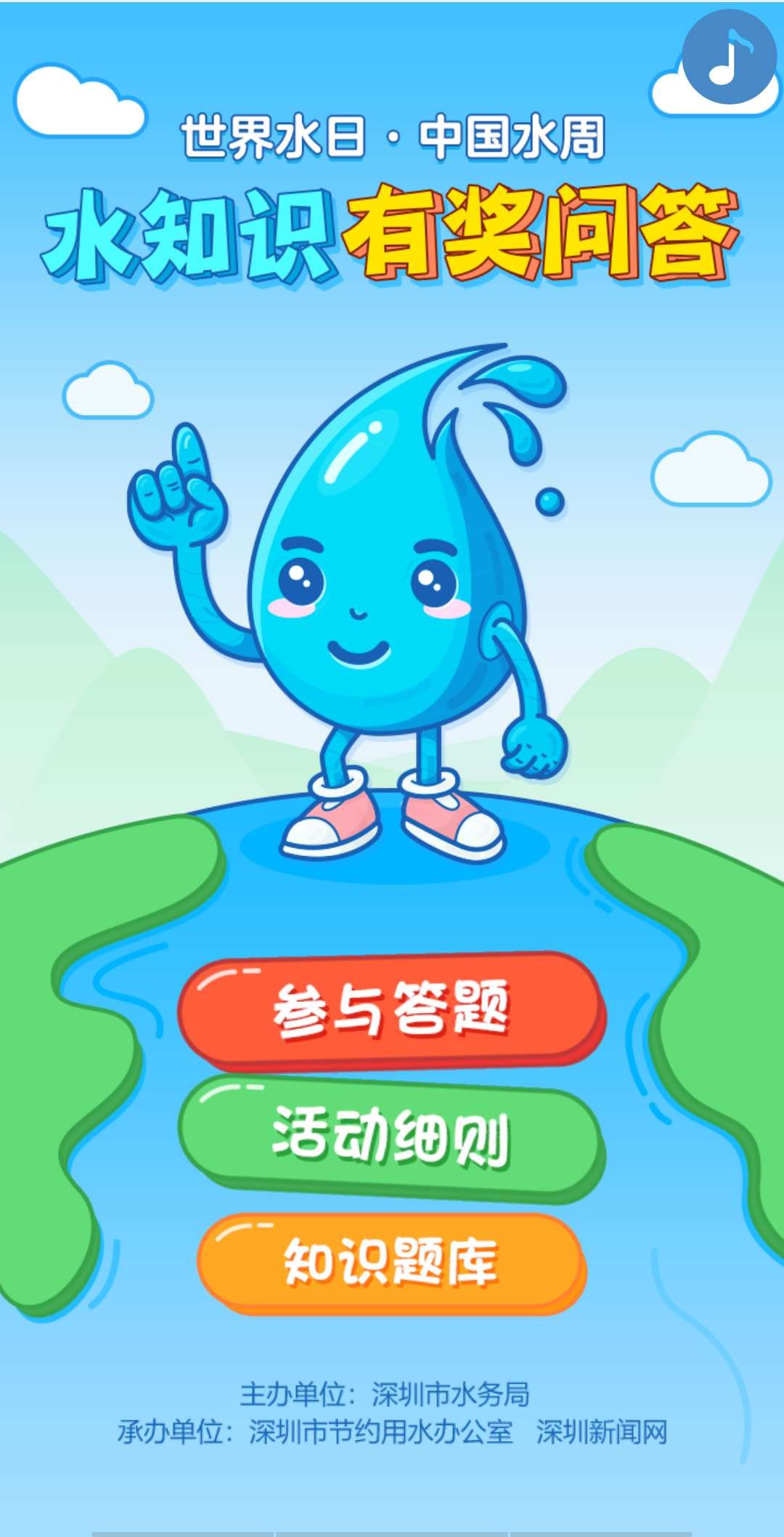為了讓大家更好地了解全球水資源現(xiàn)狀、意識(shí)到“節(jié)水”的重要性積極加入到節(jié)水行列,水務(wù)君也是煞費(fèi)苦心現(xiàn)給大家準(zhǔn)備了一個(gè)問(wèn)答小游戲!(還是能贏紅包的那種哦!嘖嘖嘖