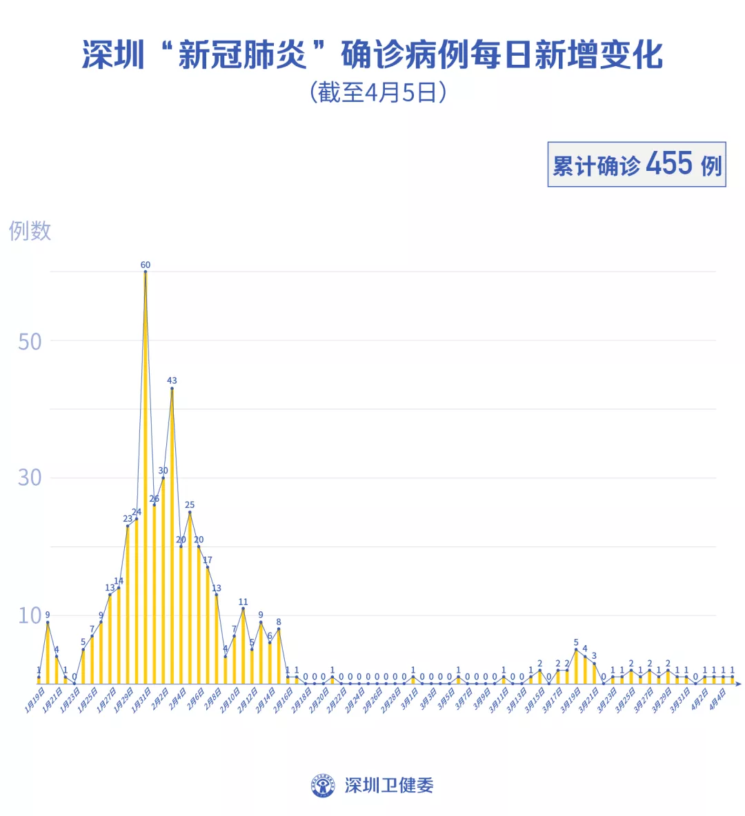 截至4月5日24時,深圳累計報告新冠肺炎病例455例。4月5日當天新增境內(nèi)病例1例,新增無癥狀感染者2例,出院1例。