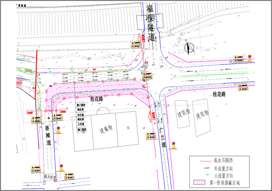 第一階段:對(duì)桂花路(福保隧道-香樟道段)南半幅(靠紅樹福苑側(cè))進(jìn)行封閉占用施工,北半幅臨時(shí)調(diào)整為三車道,一車道西行(進(jìn)保稅區(qū)方向),兩車道東行(出保稅區(qū)方向)。行人及非機(jī)動(dòng)車輛可通過現(xiàn)狀公園側(cè)人行道或紅樹福苑退線空間通行。自4月20日起,本階段預(yù)計(jì)持續(xù)施工60天。