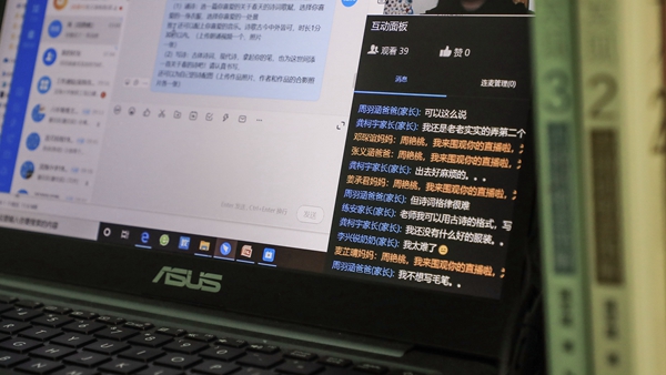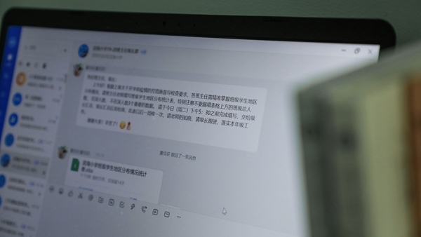 上午的直播課剛結束,周老師又開始處理起收集統(tǒng)計數(shù)據(jù)的工作。周老師的丈夫同樣也是一名教師,相比其他在家辦公的老師而言,雙教師家庭的教學設備就顯得緊張了起來,家里只有一臺電腦,如何兼顧兩個人使用呢?對此,周老師夫婦倆特意調(diào)整錯開了直播課的時間,盡量避免出現(xiàn)兩個人同時需要使用電腦進行直播的情況。但是,除了直播課,在家辦公的老師們,尤其是周老師這樣的班主任,還要使用電腦進行傳達通知、收集各種學生的信息、備課、批改作業(yè)等工作。有時候,雙方突然都收到需要緊急處理的事項,周老師夫婦只能比別的老師們更加快速、高效完成,兩人之間實現(xiàn)無縫銜接使用,才能不耽誤工作。
