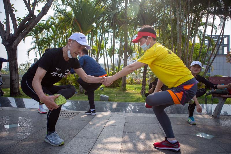 今天的登山活動,其實從蓮花山西門的跑步開始的。不到十分鐘,王石等就達到了蓮花山頂,隨后從山頂下山,跑步3.5公里到達蓮花山與市民中心的連廊平臺,在此完成拉伸后,整個登山和跑步活動完美結(jié)束。