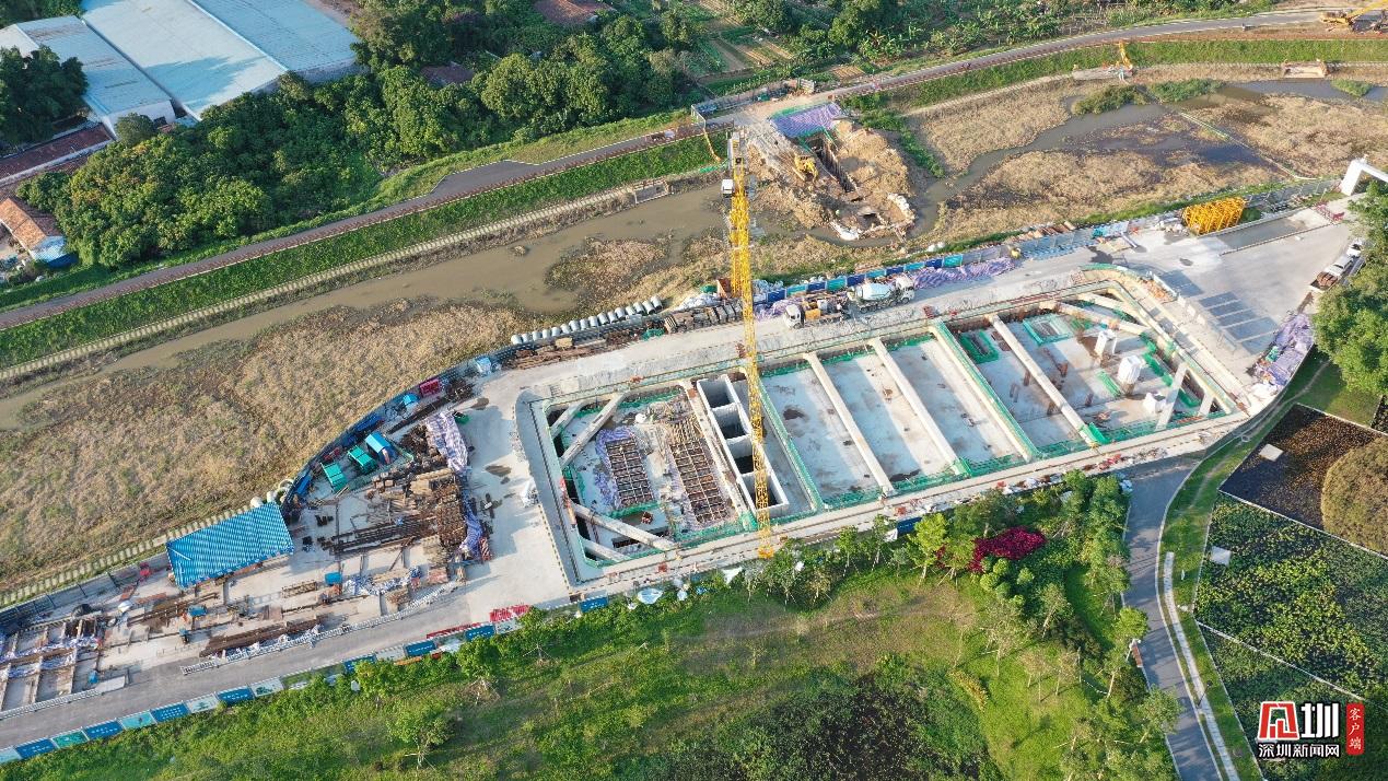 新陂頭干流調(diào)蓄池施工現(xiàn)場。為追趕進度,搶抓工期,光明 EPC消黑項目部爭分奪秒,全面向著完工節(jié)點出發(fā)。