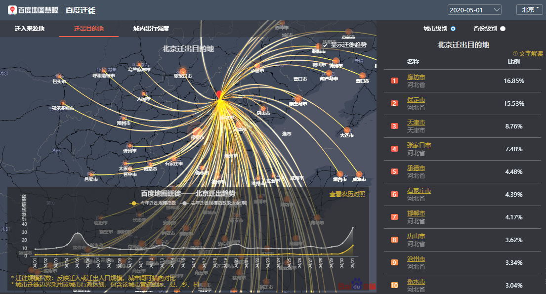 百度地圖遷徙大數(shù)據(jù)平臺(tái)-北京遷出目的地