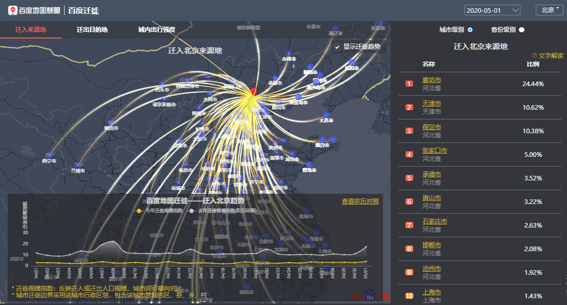 百度地圖遷徙大數(shù)據(jù)平臺(tái)-遷入北京來源地