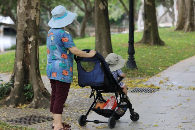 ▲遮陽傘、太陽帽成了市民出行必備之物。