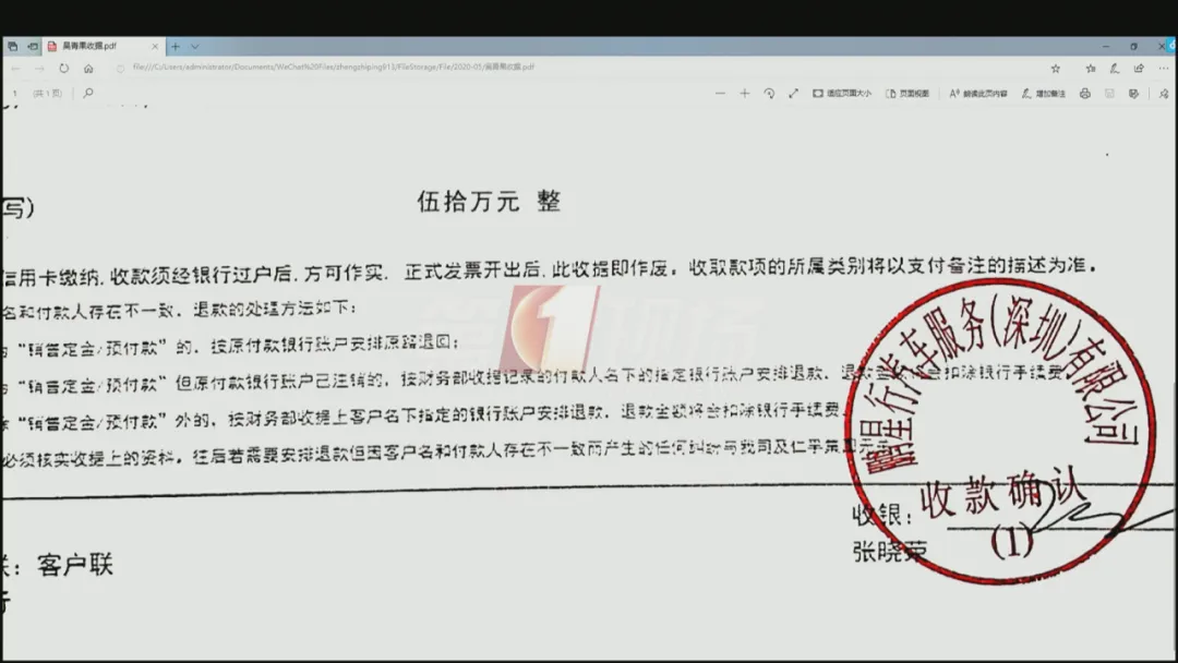 我是在你的4s店里購車,是你的員工用POS機(jī)刷的卡,是你們車行名字的收據(jù),然后也給我們50萬的收據(jù),上面也有他們車行的收款專用章,跟我們之前定金的收據(jù)都是一樣。