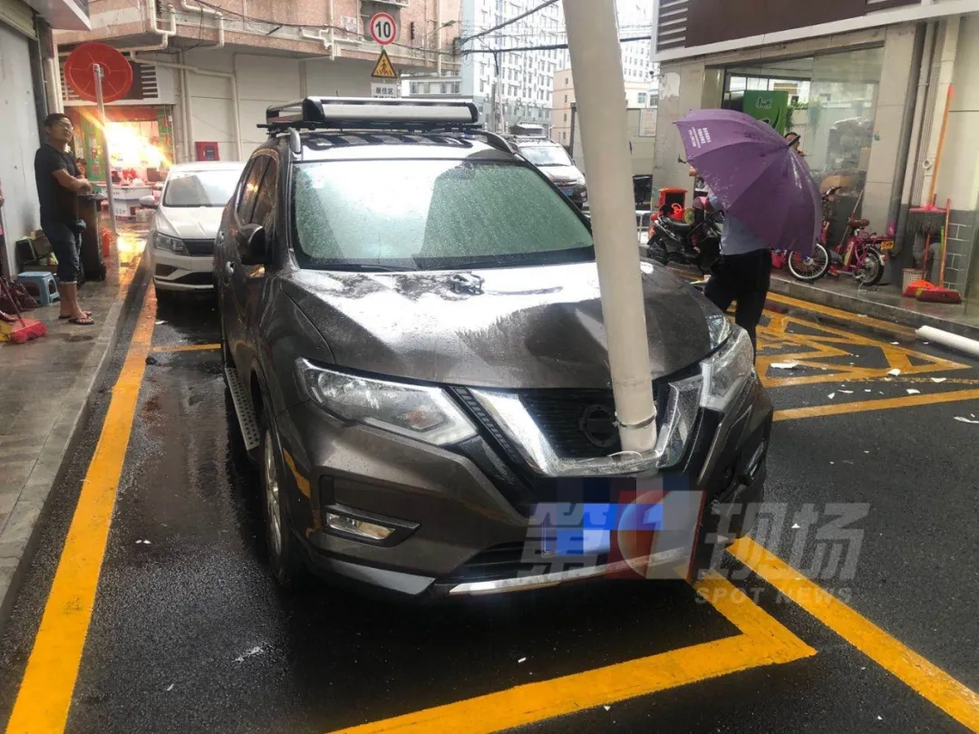 原標(biāo)題:10米雨水管從天而降,直插小車“頭部”,還有床墊、儲(chǔ)水箱...