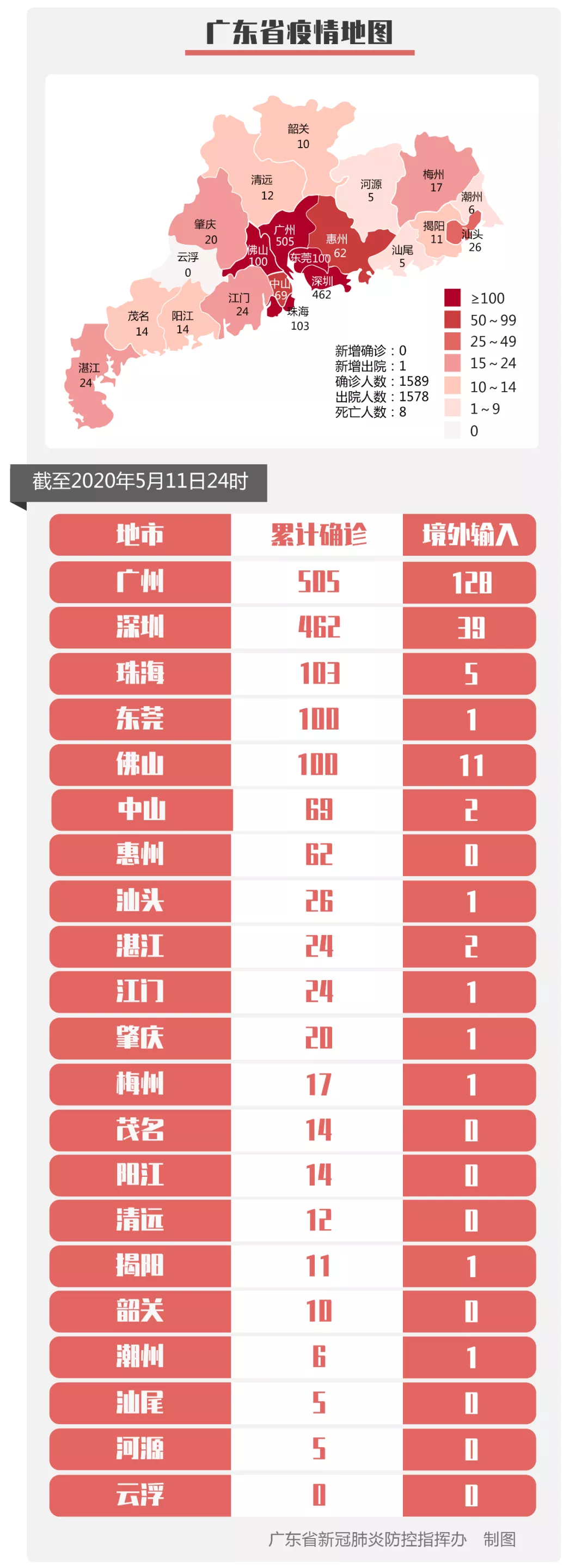 截至5月11日24時,深圳累計報告新冠肺炎病例462例。