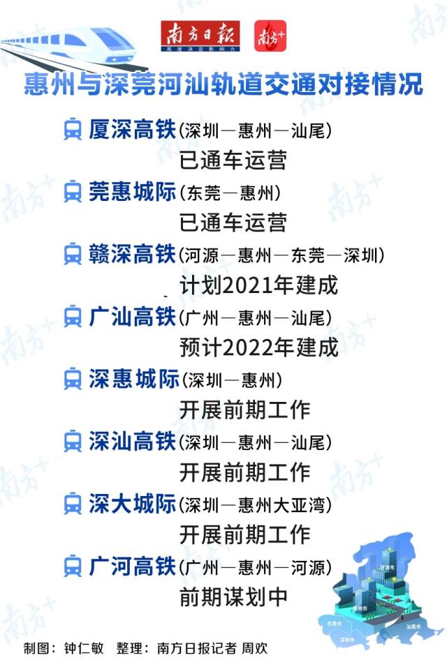 惠州市發(fā)改局透露,目前,贛深高鐵正加快建設(shè),計(jì)劃2021年建成通車。記者了解到,這條設(shè)計(jì)時(shí)速350公里的“灣區(qū)大動(dòng)脈”,屆時(shí)將把深圳、東莞、惠州、河源“串”在一起,深莞惠將半小時(shí)互通。