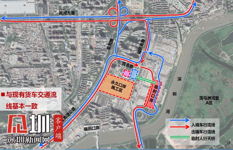 據(jù)了解,皇崗口岸臨時旅檢場地建設(shè)工程選址于貨檢出境場地和入境場地中間位置,需要拆除貨車出境一半的通道作為建設(shè)用地。在建設(shè)過程中既要保證皇崗口岸24小時正常通關(guān)秩序,也要服從口岸區(qū)域監(jiān)管的各項要求,施工和通關(guān)互相影響,堪比“開著汽車換輪胎”,難度在深圳口岸改造和建設(shè)中前所未有。