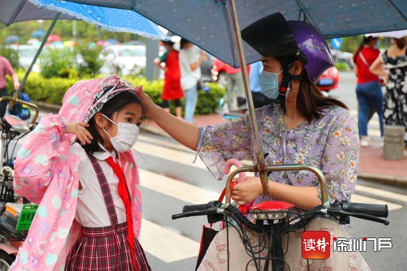 今天,龍城小學一至三年級的龍小豆們返校啦!盡管龍舟水傾盆而至,但龍小巴學園為孩子們遮風擋雨!為了解決龍小豆們返?!白詈?.1公里”,龍城小學在學校門外設立風雨連廊,并在東西門內(nèi)搭建藍色頂棚,方便風雨天里龍小豆們?nèi)胄#★L里雨里,孩子們,校園都在等你?。ㄗx特記者李麗)