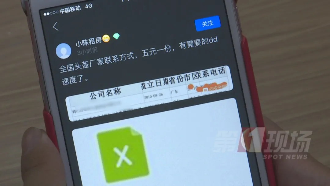 在一個(gè)社交平臺(tái)上,就有以33元的單價(jià),收購十萬個(gè)頭盔的買主。還有的人則是手握訂單,要找生產(chǎn)頭盔的廠商。更有甚者,以頭盔廠商的聯(lián)系方式作為資源,以五元4000個(gè)聯(lián)系方式,進(jìn)行叫賣。