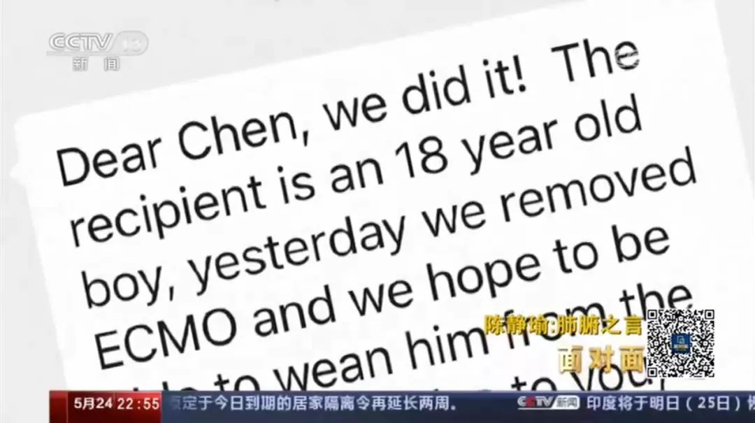 5月20日,全國人大代表、無錫市人民醫(yī)院副院長陳靜瑜收到了意大利同行發(fā)來的短信,意大利完成了歐洲首例新冠肺炎晚期肺纖維化的雙肺移植,受者是一名18歲的男孩,中國經(jīng)驗在國際上得到分享傳播。