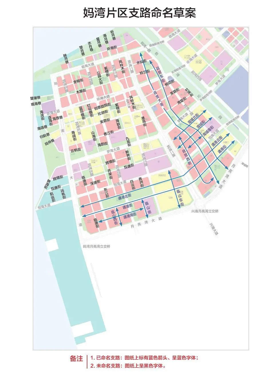 據(jù)悉,2013年市政府同意的《前海深港現(xiàn)代服務(wù)業(yè)合作區(qū)地名規(guī)劃》,確定了前海15平方公里范圍內(nèi)桂灣、前灣、媽灣三個(gè)片區(qū)名稱,臨海大道、聽海大道等主次干道名稱,橋梁、立交設(shè)施名稱,以及濱海公園、濱海休閑帶等名稱。未覆蓋前海15平方公里范圍內(nèi)支路名稱。