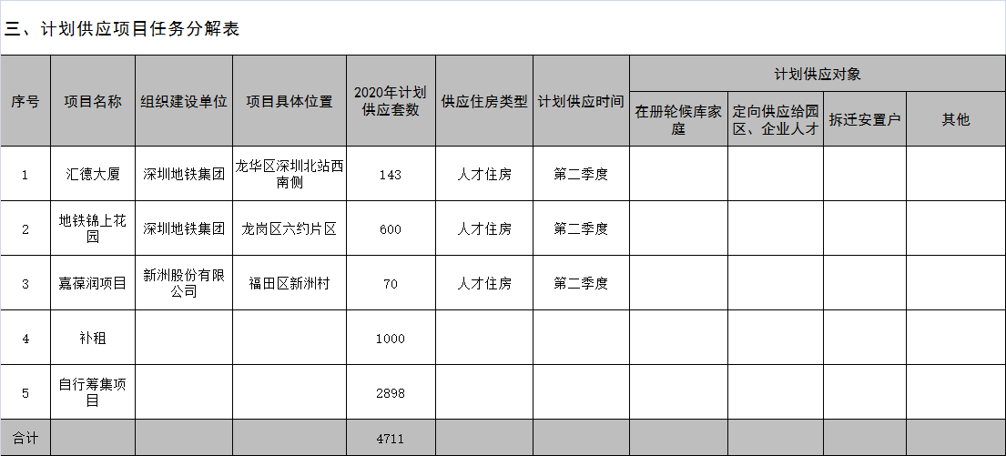 2020年,計劃完成供應(yīng)任務(wù)4711套(間),其中: