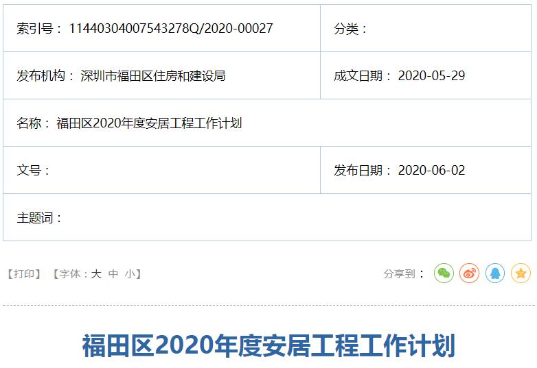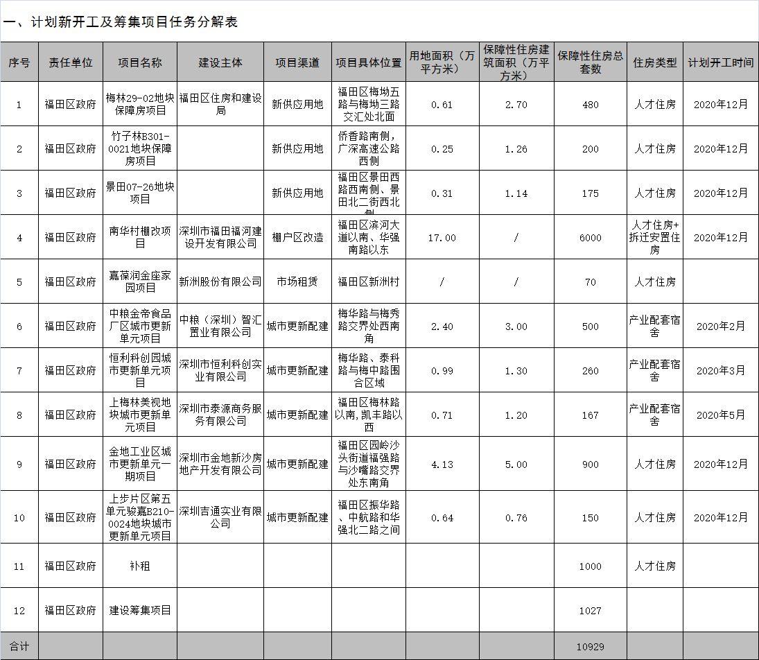 見圳客戶端?深圳新聞網(wǎng)2020年6月8日訊(晶報記者 劉珂)近日,福田區(qū)住房和建設(shè)局公布了《福田區(qū)2020年度安居工程工作計劃》。根據(jù)《深圳市安居工程2020年度工作目標(biāo)責(zé)任書》(以下簡稱責(zé)任書)有關(guān)任務(wù)要求,福田區(qū)研究制定了2020年度安居工程新開工及籌集、基本建成(含竣工)、供應(yīng)等工作計劃。