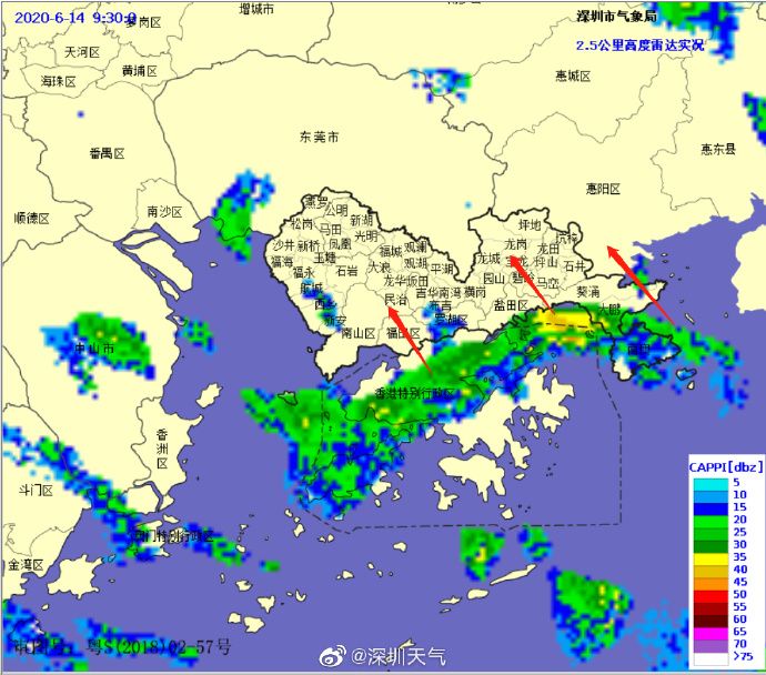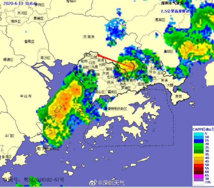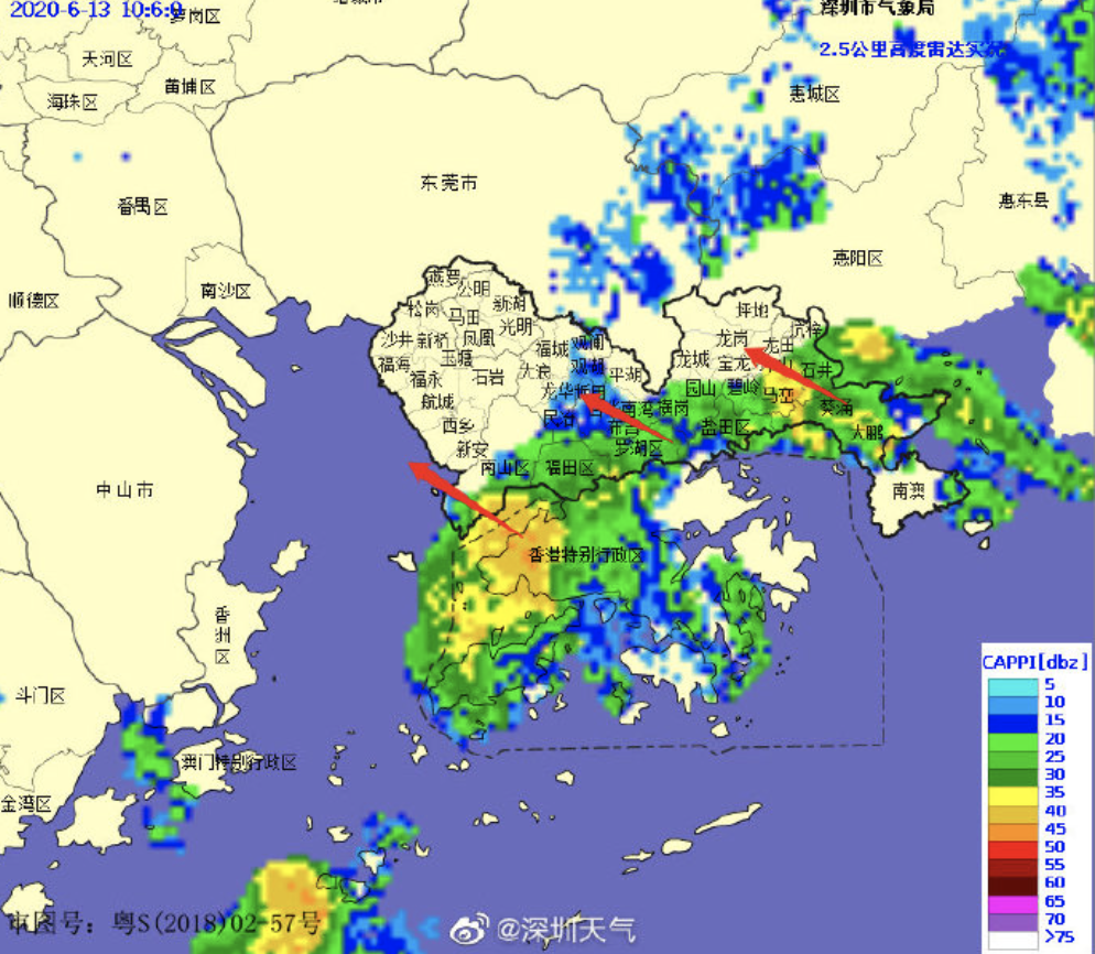 降雨云團正在往西北方向移動,預計將會影響龍華、光明和寶安北部區(qū)域。