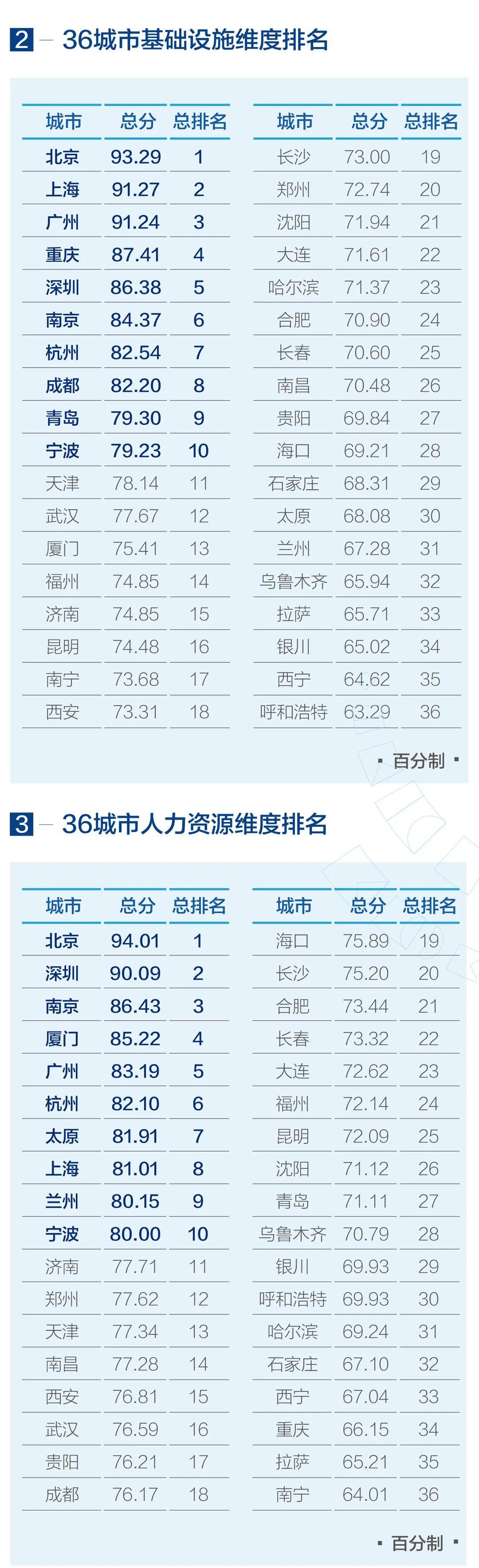 北京、上海、深圳、廣州、重慶、南京、杭州、成都、天津、寧波在綜合評價(jià)排名中位列前十。